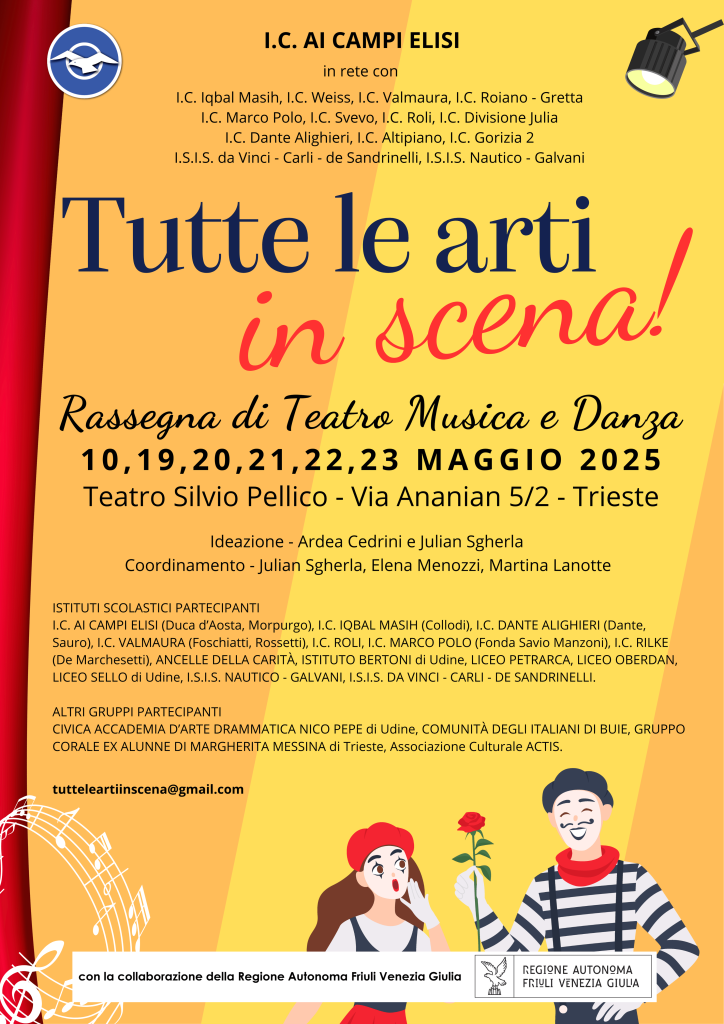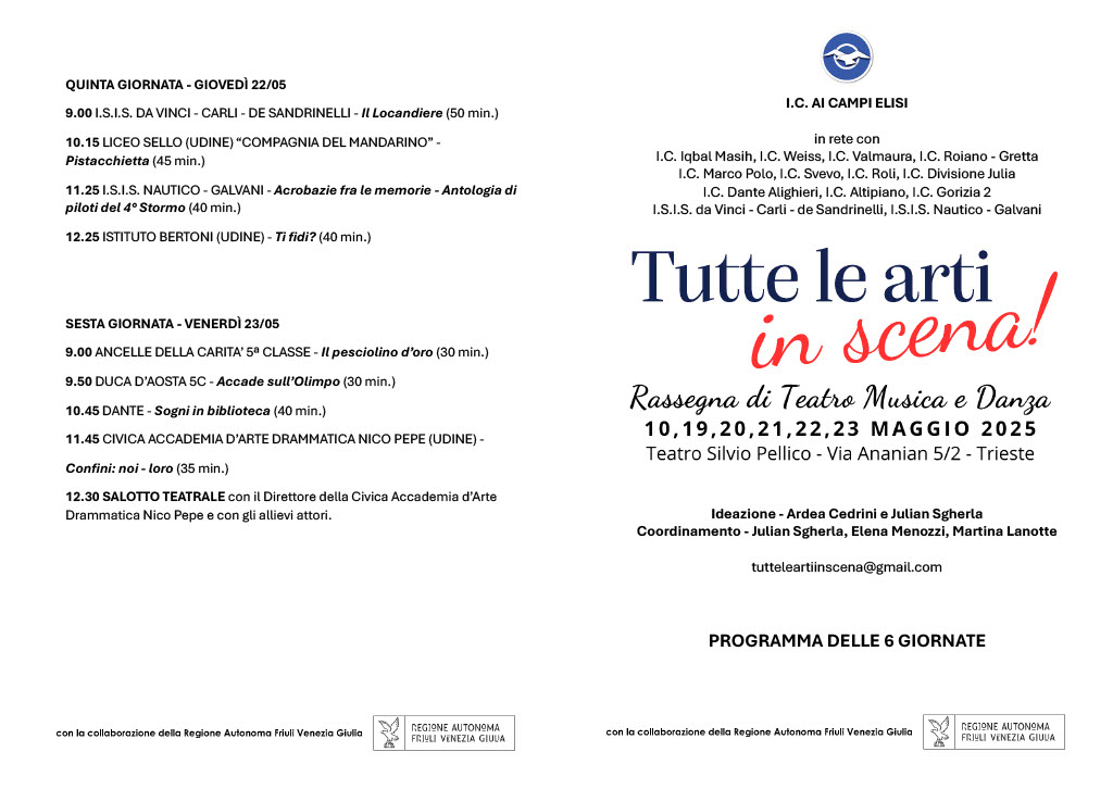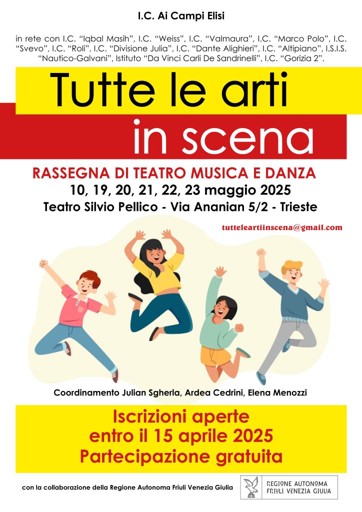 L’Istituto Comprensivo “Ai Campi Elisi” di Trieste ha organizzato, con il contributo della Regione Autonoma F.V.G. una rassegna scolastica teatrale a livello regionale ed europeo.